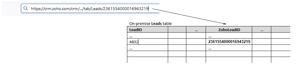 Figure 1. Linking Zoho Identifiers with on-premise table